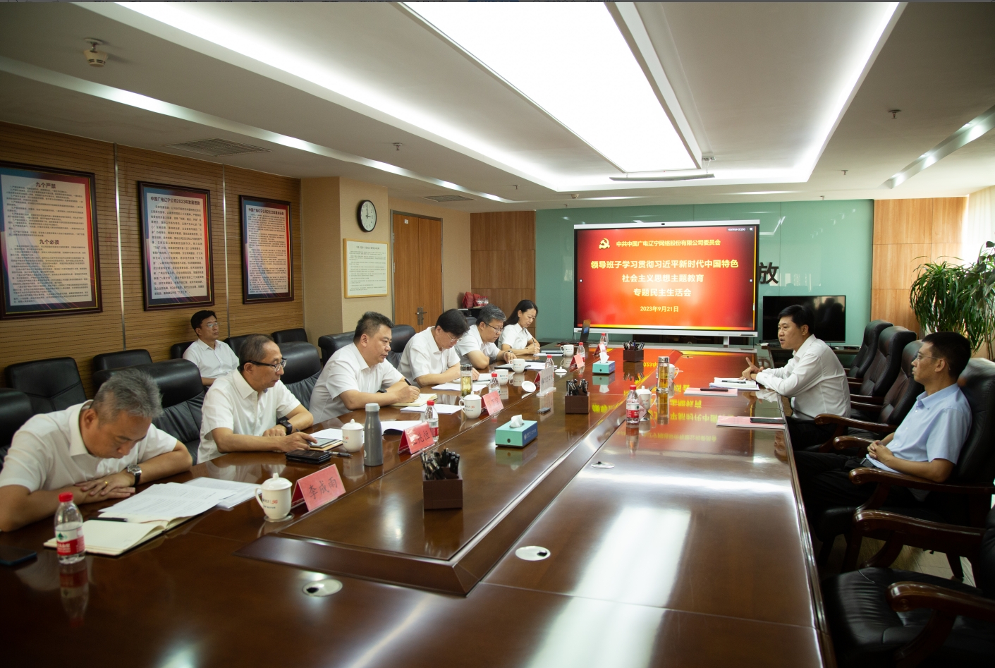 2023年9月21日下午,中國廣電遼寧網絡股份有限公司(簡稱中國廣電遼寧公司)召開領導班子學習貫徹習近平新時代中國特色社會主義思想主題教育專題民主生活會。省委宣傳部文改辦主任李東到會指導。會議由公司主要領導要春華主持,全體領導班子成員參加會議。黨建部門相關負責人列席會議。