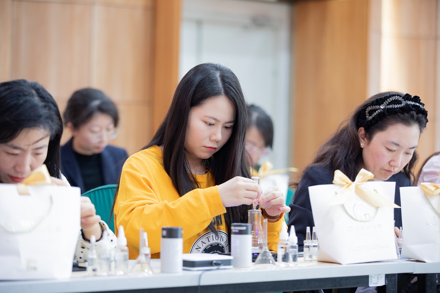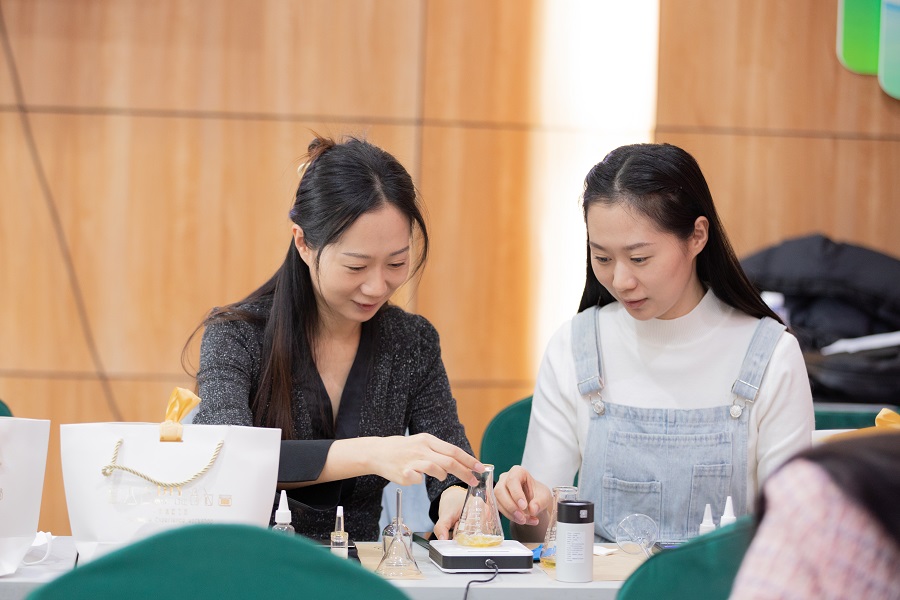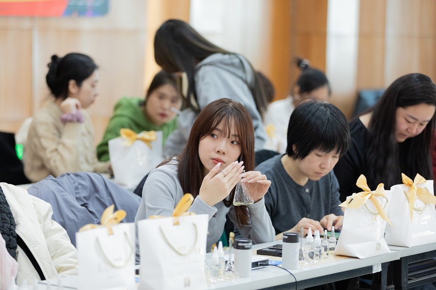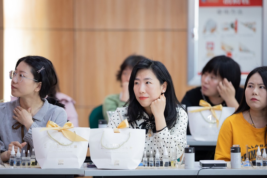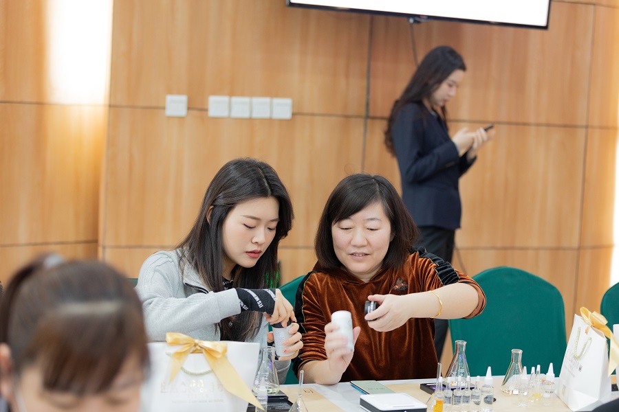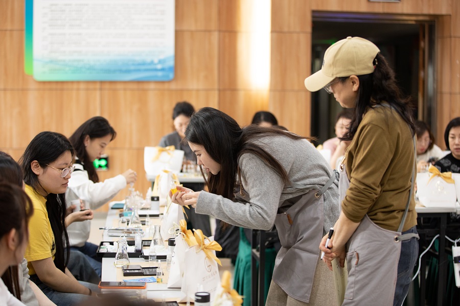 DIY環節,從聞香與辨香開始,在調香師的悉心講解與指導下,大家通過細細品聞,漸漸明確了自己想要的味道和基調,整個活動新穎而有趣,現場圍浪漫而歡樂,體驗了一次精致、美妙的香水制作與鑒賞之旅。