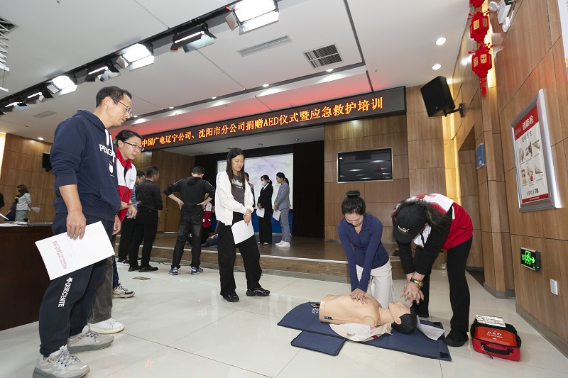 捐贈儀式上,中國廣電遼寧公司、沈陽市分公司領導、遼寧省紅十字基金會相關負責人以及員工代表共計30多人共同見證了這一時刻。遼寧省紅十字基金會項目運營部部長周軍表示,此次捐贈活動旨在進一步推動社會對急救知識的普及,提高社會各界在突發(fā)情況下的應急救護能力,讓AED等急救設備走進更多公共場所,以保障公眾在突發(fā)心臟驟停等意外事件中的生命安全。