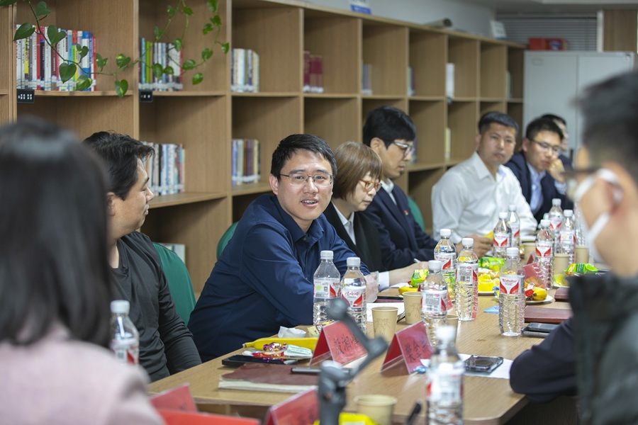 在隨后舉行的座談會中,僅能容下20人的“職工書屋”閱覽室里,擠進了近30名對AI智能技術感興趣的干部員工。部分員工剛進屋,還未等就座,就你一言我一語地討論起來。在公司總部工會副主席樊金洪、讀書興趣愛好小組組長殷湘峰組織和董教授指導下,與會者結合“講座”知識,圍繞“創新賦能,智見未來”沙龍主題,分別從財務管理、媒體合作、人力資源、工程技術、綜合辦公、集團業務、客戶服務、市場開發、信息管理等角度,闡述了自己對AI智能技術的理性思考,分享了對“AI+廣電”業務創新觀點、設想與展望。在此起彼伏的掌聲與笑聲中,進行了近2個小時的熱烈討論。