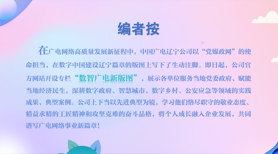 在數字中國建設的宏偉藍圖下,中國廣電沈陽公司集團客戶部始終牢記“黨媒政網”的政治使命,以黨支部為戰斗堡壘,深耕數字政府、智慧城市、公安應急等核心領域。通過技術創新與場景落地的雙輪驅動,打造了一批具有沈陽特色的數智化標桿項目,為地方黨委、政府決策提供技術支撐,為經濟社會發展注入廣電動能,在服務民生福祉中彰顯國企擔當。