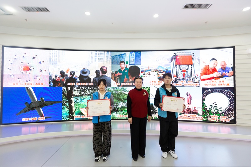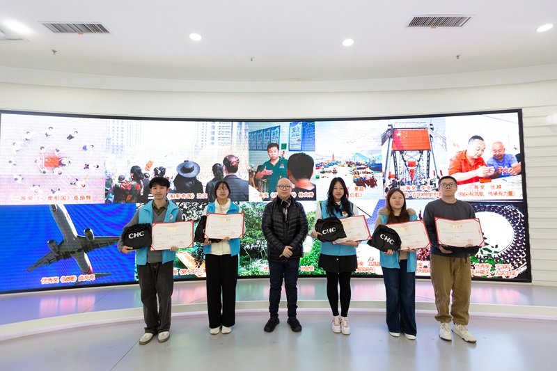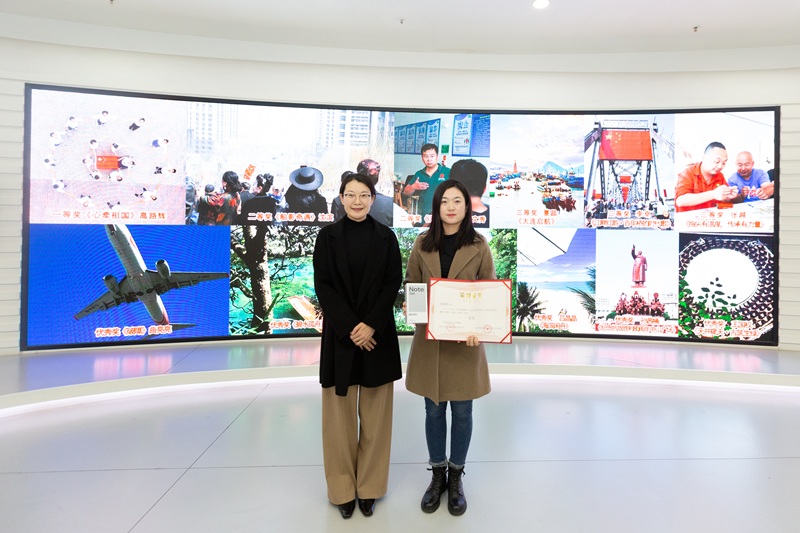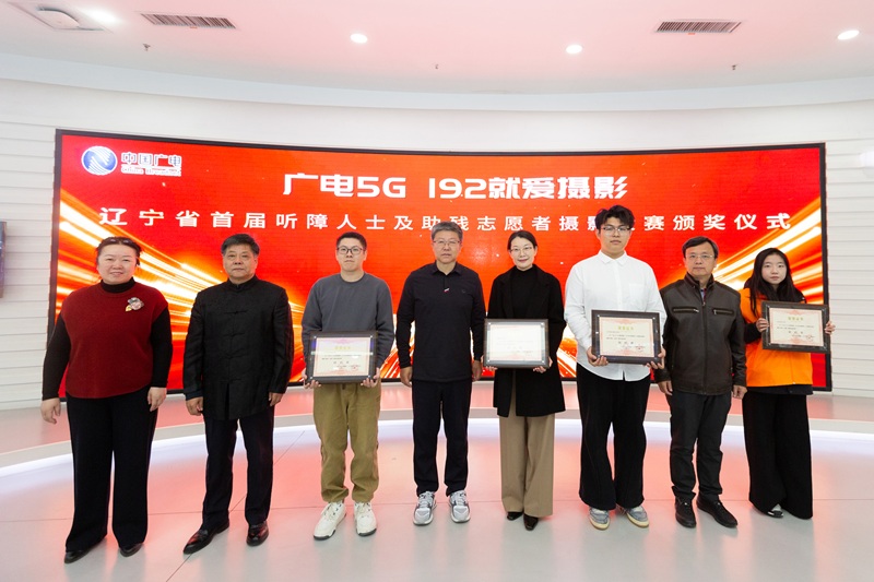 中國(guó)廣電遼寧公司黨委委員、副總經(jīng)理馬震為助殘志愿者組一等獎(jiǎng)獲得者頒獎(jiǎng)