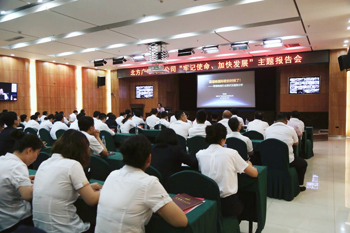 6月20日,北方廣電網絡公司召開“北方廣電大講堂”首場報告——“牢記使命、加快發展”主題報告會。北京中廣格蘭信息科技有限公司董事長、總經理,兼任中國廣播電視協會有線電視委員會副秘書長、中國電影電視技術學會臺網協作發展專業委員會常務副主任委員兼秘書長、中國電視藝術家協會媒體融合推進委員會常務理事、北京郵電大學MBA中心特聘導師、國家開發銀行行業顧問曾會明先生作報告。會議由公司黨委委員、總工程師王兆恒主持。