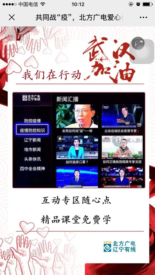 北方廣電愿同全國人民一道,團結一心、同舟共濟,齊心協力做好疫情防控工作;北方廣電全體員工將從自己做起,從身邊做起,奮發有為、共克時艱,堅決打贏這場疫情防疫攻堅戰!