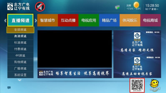 如果您家里已安裝北方廣電機頂盒,開機后掃描屏幕右下方“業務預約二維碼”,即可進行業務預約。