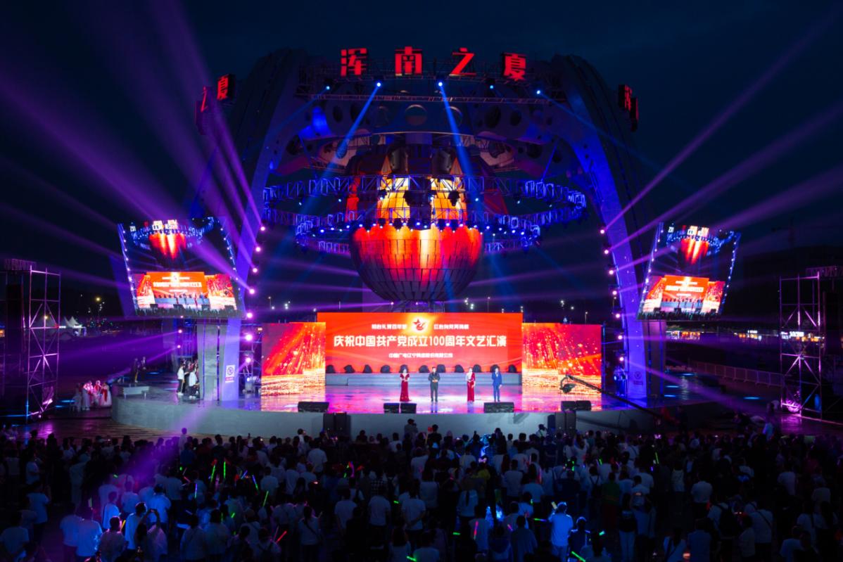 渾南之夏,黨旗飄揚;渾水河畔,歌舞傳情。2021年6月27日傍晚,中國廣電遼寧網絡股份有限公司(簡稱中國廣電遼寧公司)“初心禮贊百年夢 紅心向黨再揚帆”——慶祝中國共產黨成立100周年文藝匯演,在沈陽市渾南新區中央公園文化廣場隆重舉行。公司領導曾紹武、張曉鈞、陳金宏、王兆恒、要春華,總助級領導李成雨和來自公司總部及沈陽、撫順、本溪市分公司的300余名干部員工及周邊群眾共計千余人觀看了演出,共同慶祝黨的百年華誕。