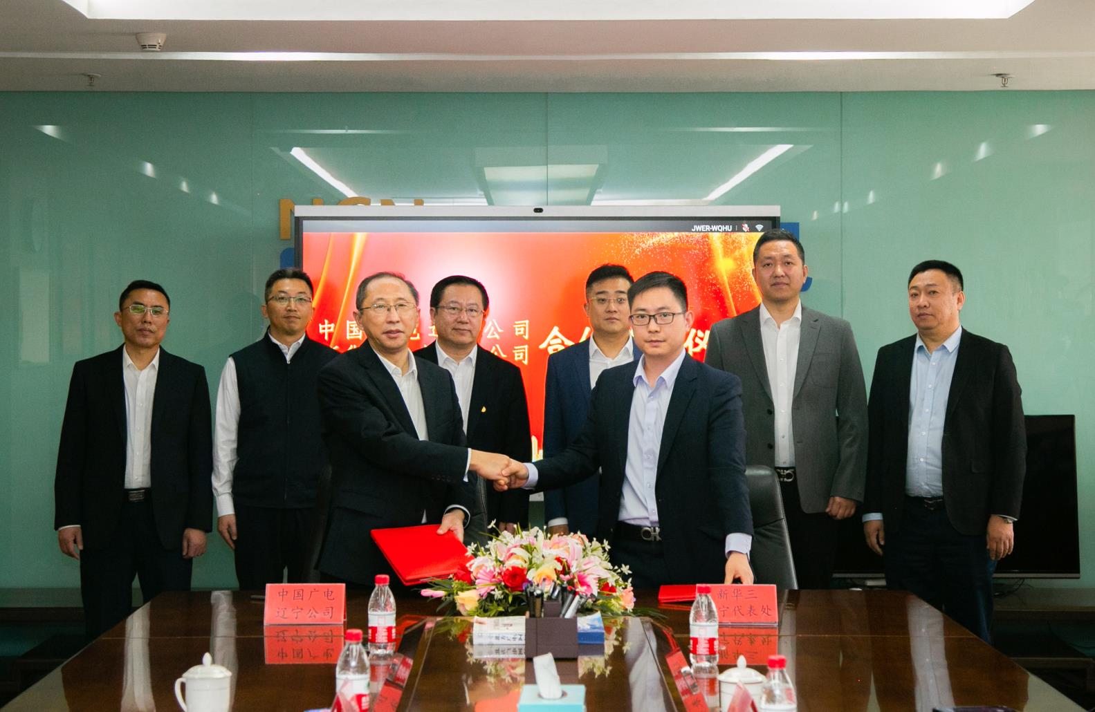 中國廣電遼寧公司總工程師王兆恒與新華三集團(tuán)遼寧代表處產(chǎn)品部部長鄭東亞簽署戰(zhàn)略合作協(xié)議