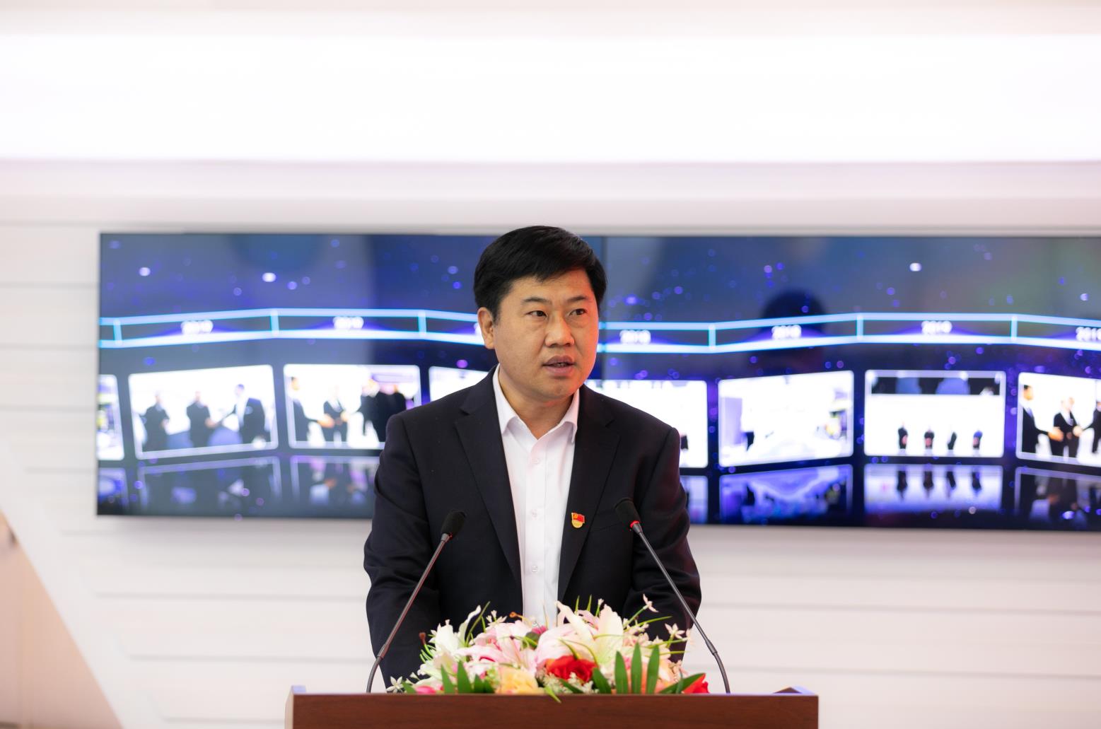 曾紹武董事長向參加儀式領導介紹公司5G智慧安防、智慧港口等業務應用