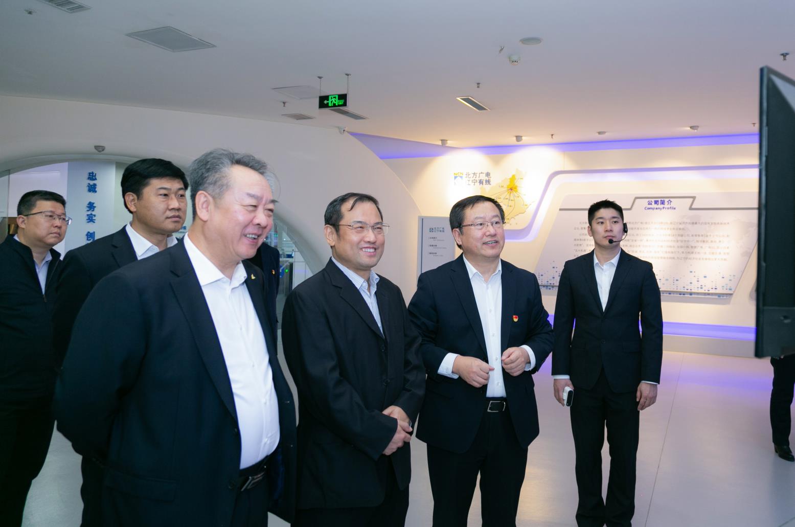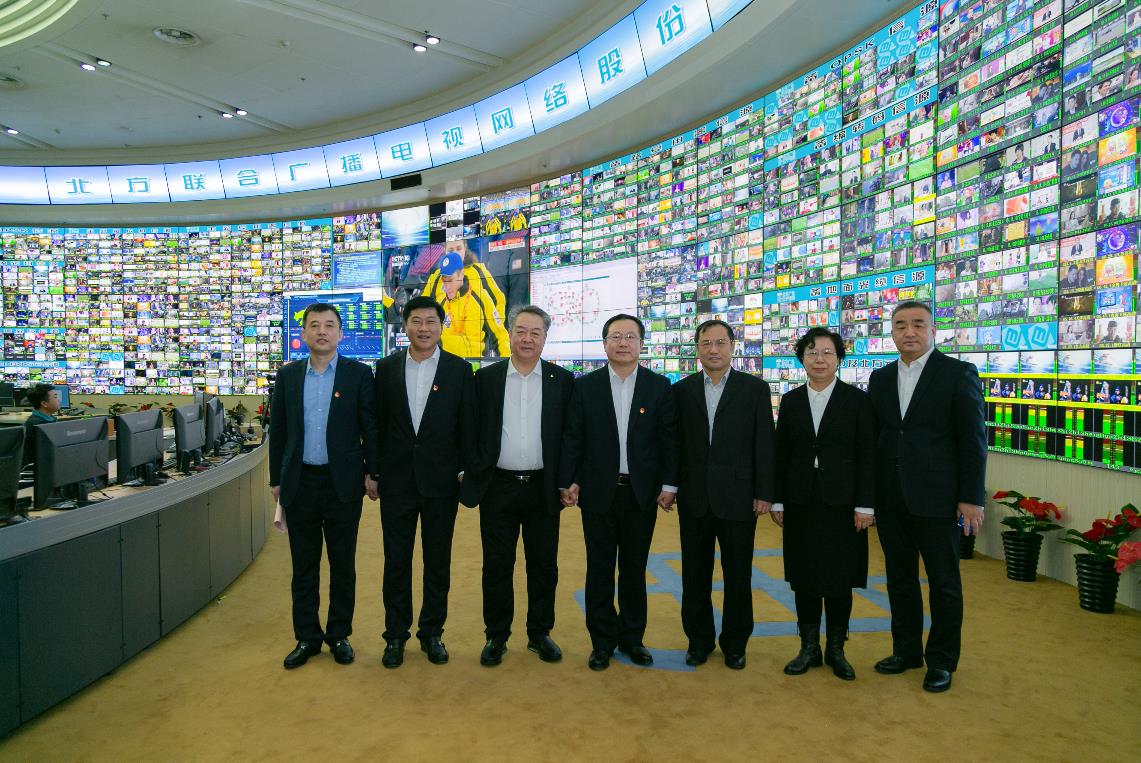 戰略合作三方領導在監控平臺前合影