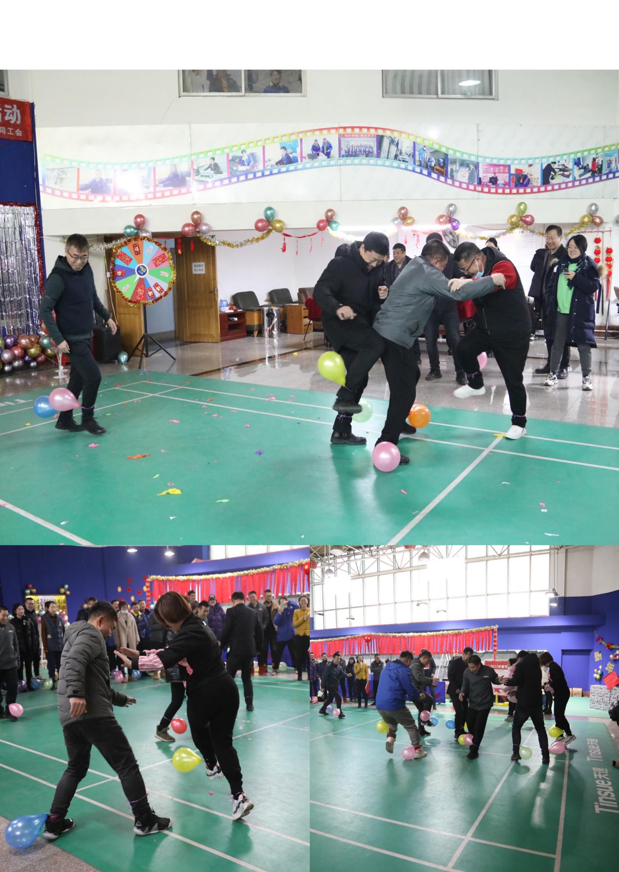 本次游藝活動內(nèi)容豐富多彩,有“雙人背夾氣球接力賽”、“你劃我猜”、“拋繡球”、“踩氣球”、“猜謎語 ”等活動。整個活動過程緊張激烈又趣味橫生,吶喊聲、助威聲、歡笑聲此起彼伏,營造了喜慶、祥和的節(jié)日活動氛圍。