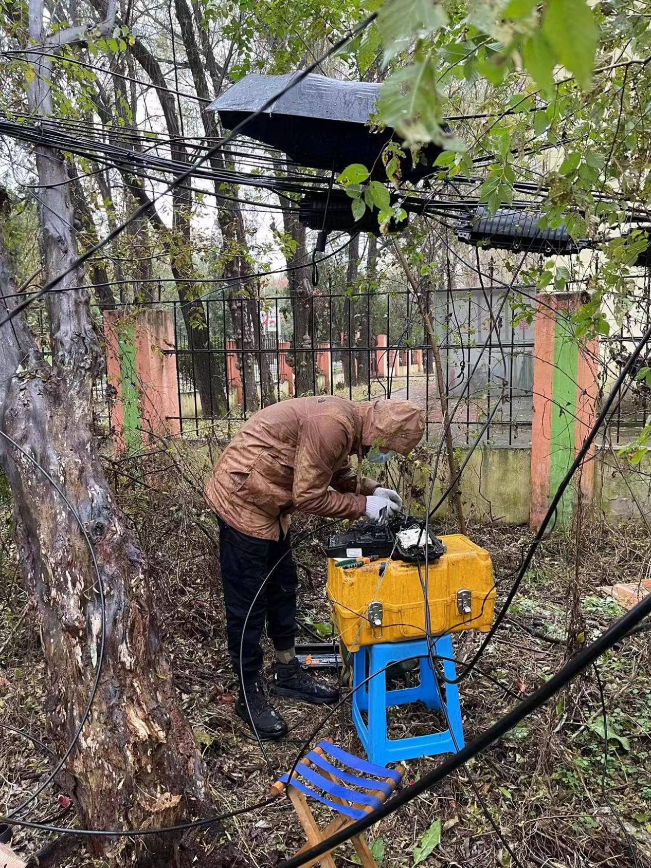 今年入秋,遼陽地區(qū)連降大雨,受此影響部分郊區(qū)、村鎮(zhèn)傳輸信號(hào)的桿路和光纜被刮斷,區(qū)域內(nèi)用戶無法正常觀看電視和使用網(wǎng)絡(luò)。接到搶修任務(wù)后,程明與同事們火速趕到現(xiàn)場,對(duì)受損的設(shè)備進(jìn)行勘查。經(jīng)排查,故障點(diǎn)較多,短時(shí)間無法完成修復(fù)。為此,程明根據(jù)搶修難易程度制定了維修計(jì)劃。由于路途較遠(yuǎn),加之連日大雨使山路泥濘,開車往返需要近3個(gè)小時(shí)。為不耽誤搶修時(shí)間,程明和搶修小組成員每天早上7點(diǎn)半就從公司出發(fā),中午常常顧不上吃飯,忙到深夜更是常事。在故障搶修現(xiàn)場,搶修小組分工明確、密切配合,程明更是充分發(fā)揮自身專業(yè)優(yōu)勢,為現(xiàn)場搶修提供“技術(shù)指導(dǎo)”。經(jīng)過2個(gè)月的維修,故障線路全部修復(fù),信號(hào)傳輸恢復(fù)正常。