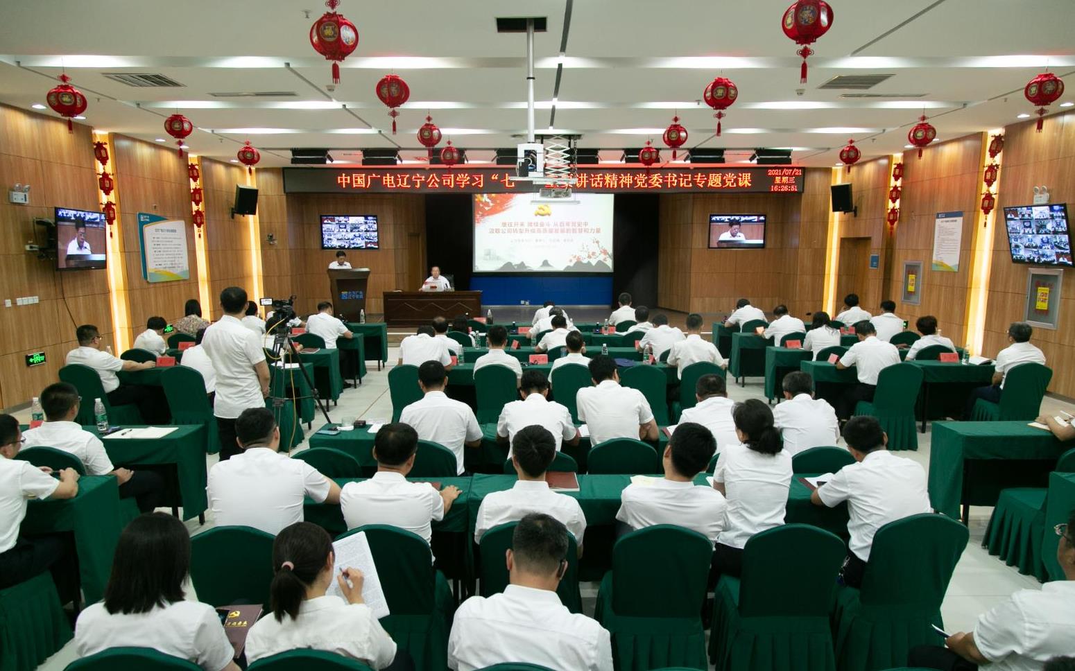 2021年7月1日上午,中國廣電遼寧公司組織公司總部及各分(子)公司千余名黨員干部職工集中收聽收看慶祝中國共產(chǎn)黨成立一百周年大會直播,聆聽中共中央總書記、國家主席、中央軍委主席習近平在慶祝大會上的重要講話。