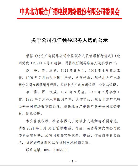 北方廣電網絡公司企業負責人2019年度薪酬公示