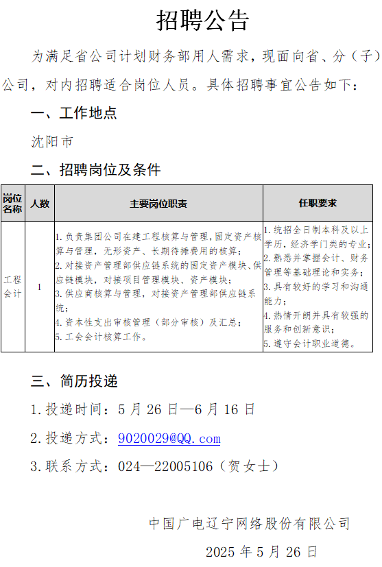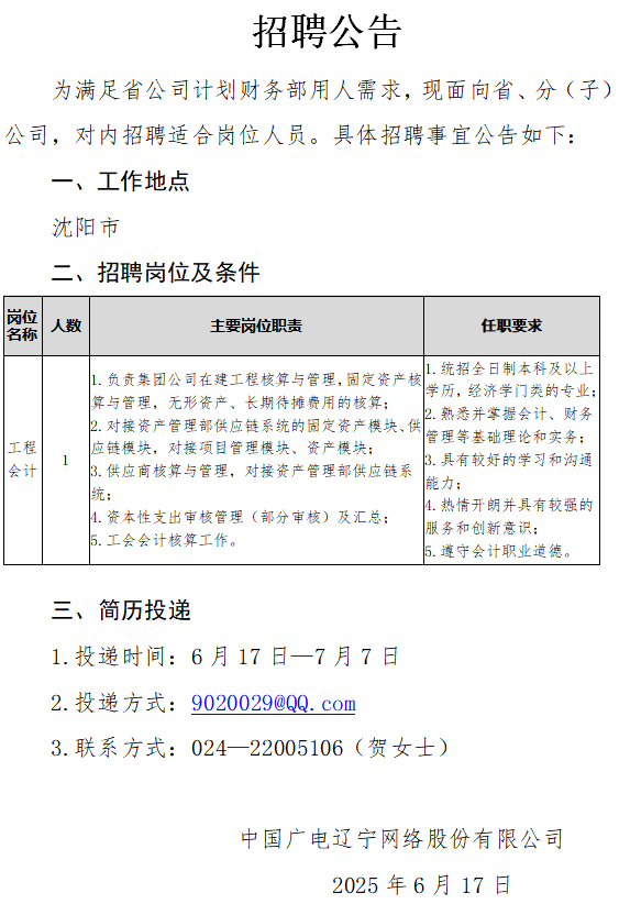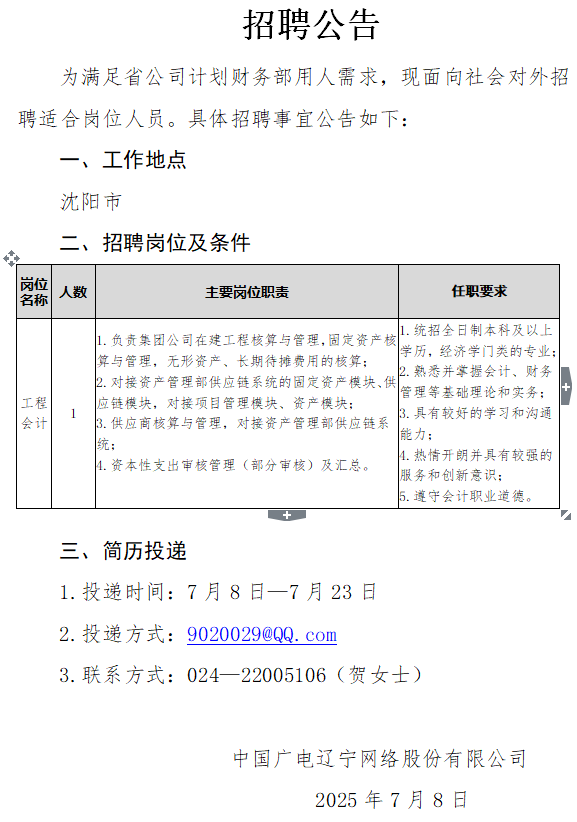 聯系人:陰女士 簡歷投遞郵箱:498937319@qq.com