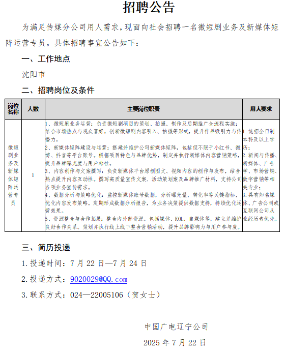 聯系人:陰女士 簡歷投遞郵箱:4989937319@qq.com
