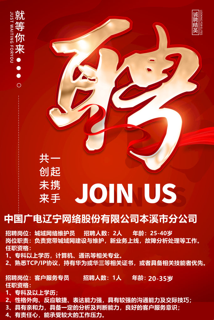 北方廣電網(wǎng)絡公司營口分公司招聘信息